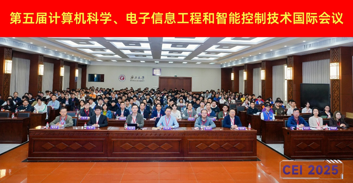 2025年11月22日,第五届计算机科学、电子信息工程与智能控制技术国际会议(CEI 2025)在绿城南宁、美丽的广西大学君武馆玉林厅圆满落幕。本次大会由广西大学主办,广西大学计算机与电子信息学院/人工智能学院、广西多媒体通信与网络技术重点实验室联合承办,并得到了华南理工大学、华中科技大学、电子科技大学、广西计算机用户协会、广西图象图形学学会等单位的鼎力协办。在全球智能化浪潮奔涌、新一代信息技术与实体经济深度融合的时代背景下,本届大会的召开旨在汇聚全球智慧,共同探讨前沿趋势,对于推动学科交叉创新、促进产学研用协同发展具有重要而深远的意义。会议议程紧凑而充实,涵盖了主旨报告、口头汇报、海报展示及评优颁奖等多个环节。