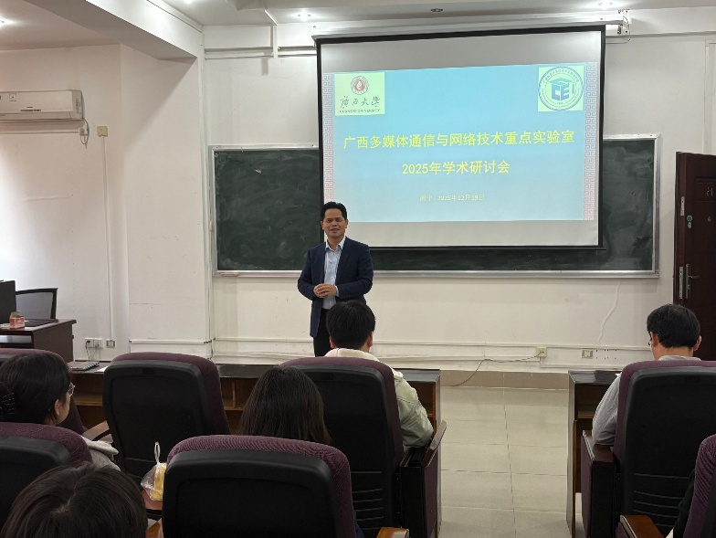 2025年12月19日,广西多媒体通信与网络技术重点实验室2025年学术研讨会在广西大学计算机与电子信息学院601教室举行。