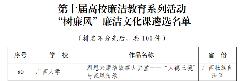 近日,教育部办公厅公布了第十届高校廉洁教育系列活动评选结果,我院党委报送的作品《周恩来廉洁故事大讲堂——“大德三境”与家风传承》成功入选第十届高校廉洁教育系列活动“树廉风”廉洁文化课。