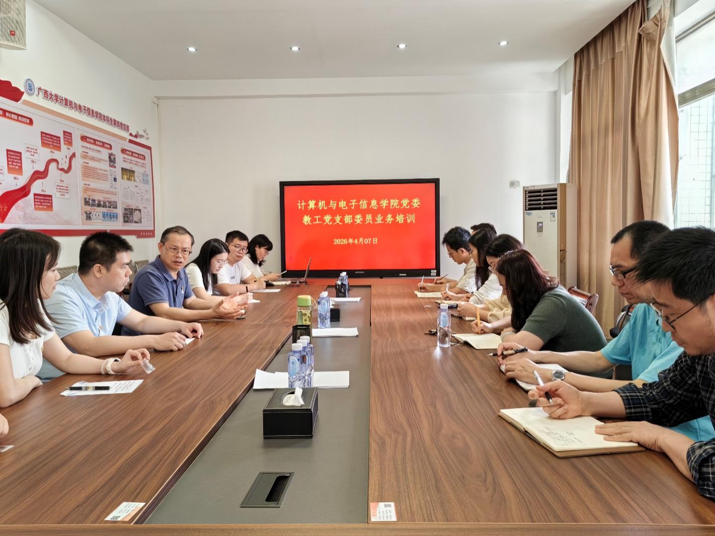 为深入贯彻落实新时代党的建设总要求,全面提升党支部委员履职能力,推动学院党建工作与事业发展深度融合、同频共振,4 月 7 日,我院党委在 213 会议室组织召开教工党支部委员业务培训会。学院全体教工党支部书记、委员以及专职组织员参会,学院党委书记赵进创主持会议并讲话。 会上,赵进创书记围绕支部建设与业务发展深度融合作重点强调。他指出,各教工党支部要充分发挥 “双带头人” 支部书记全覆盖的核心优势,紧密团结支部全体党员与全院教师,凝聚攻坚克难的强大合力,聚焦教学科研、教材建设、课程思政建设等核心业务领域,持续探索新路径、实现新突破,以高质量党建引领业务高质量发展,着力打造具有学院特色的党建工作品牌。 学院党委专职组织员薛金凤结合各教工党支部工作实际,开展针对性业务指导。她从规范党支部活动开展、深化党建与业务融合路径等方面进行系统讲解,同时就各支部扎实开展树立和践行正确政绩观学习教育,从目标要求、实施步骤、重点举措等方面给出具体指导,内容详实、指导性强,为各支部后续工作开展提供了清晰指引。 此次培训内容系统全面、重点突出,具有极强的实践指导意义。参训的支部委员纷纷表示,将把本次培训所学所悟转化为履职尽责的实际行动,以更高标准、更实举措推进党支部标准化规范化建设,推动支部工作全面提质增效,为学院事业高质量发展筑牢基层党建根基。 文:李继 图:李继 一审一校:薛金凤 二审二校:夏士岚 三审三校:赵进创
